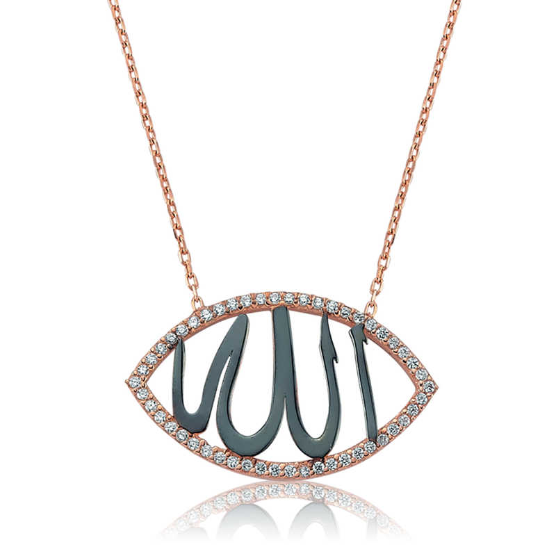 İnancını üzerinde taşımak isteyenlerin günlük hayatta yanlarından ayırmayacakları özel bir aksesuar olan bu şık kolye modeli manevi duyguları ifade etmenin anlamlı bir yolu olacaktır. Bu harika tasarım kolye size ve sevdiklerinize huzur verecek. Üzerinde arapça Allah yazılı bayan kolye 925 ayar gümüşten imal edilmiştir. Gümüş üzerine rose altın kaplama yapılmıştır. Rose altın kaplama yapılan gümüş bayan kolye modelleri parlaklığını uzun süre muhafaza eder ve oksitlenmesi gecikir. Kolye üzerinde bulunan taşlar zirkondur. Gümüş olan zincir boyu ortalama 45 cm'dir. Tüm gümüş bayan kolye modellerinde olduğu gibi gümüş Allah yazılı bayan kolye de el emeği ile üretilmiştir. Gümüş ve değerli taşlar nedeniyle belirtilen ürün ağırlığında ± %10 sapma olabilmektedir.