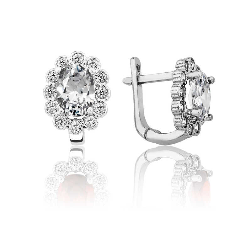 Gümüş Beyaz Çiçek Desenli J Kadın Küpe