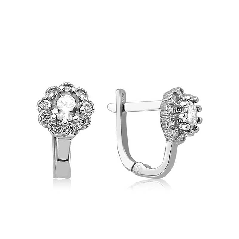 Gümüş Beyaz Çiçek Desenli Yuvarlak J Kadın Küpe