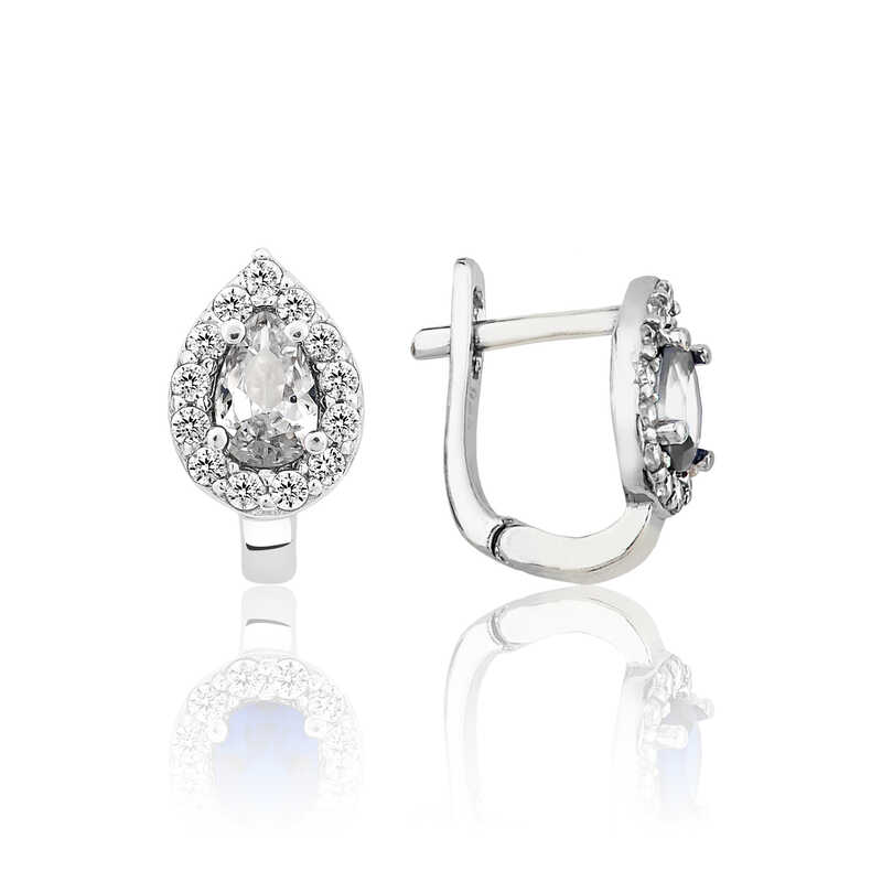 Gümüş Beyaz Taşlı Damla J Kadın Küpe