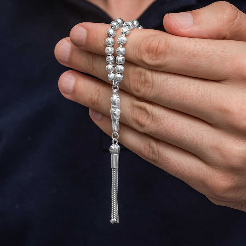 Gümüş Çizgili Yuvarlak Erkek Tesbih
