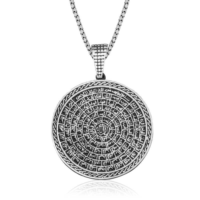 Esma-ül Hüsna, en güzel isimler anlamına gelen Allah’ın doksan dokuz ismine verilen addır. Esma-ül hüsna’nın yazılı olduğu bu harika tasarım kolye modeli 925 ayar gümüşten imal edilmiştir. Gümüş üzerine oksit kaplama yapılmıştır. Oksit kaplama yapılan gümüş, eskitme bir görünüme kavuşur. Kolye ile birlikte gelecek olan zincir de gümüştür. Tüm gümüş kolye modellerimizde olduğu gibi gümüş esma-ül hüsna kolye modeli de el emeği ile üretilmiştir. Gümüş ve değerli taşlar nedeniyle belirtilen ortalama ürün ağırlığında ± %10 sapma olabilmektedir.