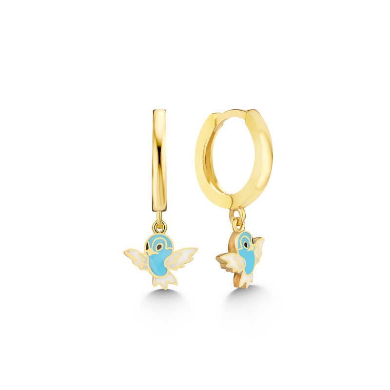 Gümüş Gold Mavi Renkli Sallantılı Kuş Kadın Küpe