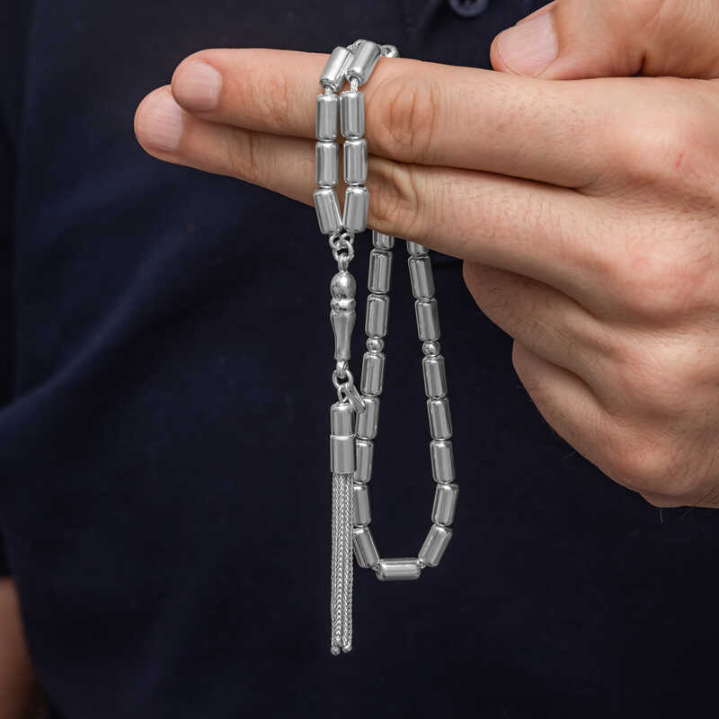 Zarifliği ve sadeliği bir araya getiren Gümüş Kapsül Kesim Erkek Tesbih,modern ve klasik tarzı bir arada sunar.Parlak yüzeyi ve dikkat çekici kapsül kesim taneleriyle stilinize şıklık katarken,elde rahat tutuş sağlayarak günlük kullanım için de idealdir.Gümüş rengiyle hem klasik hem modern tarzlara hitap eden bu tesbih,kombinlerinizi tamamlayan zarif bir detay olacak.Gümüş tesbihi severek kullanabilir;doğum günü,sevgililer günü veya babalar gününde ya da özel günlerde hediye olarak tercih edebilirsiniz. Ürünlerimizin tamamı el emeği ile üretilmiştir.Gümüş ve değerli taşlar nedeniyle belirtilen ortalama ürün ağırlığında ± %10 sapma olabilmektedir.