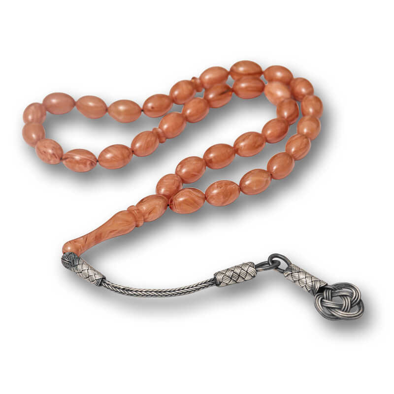 Gümüş Kazaz Püsküllü Sıkma Kehribar Tesbih