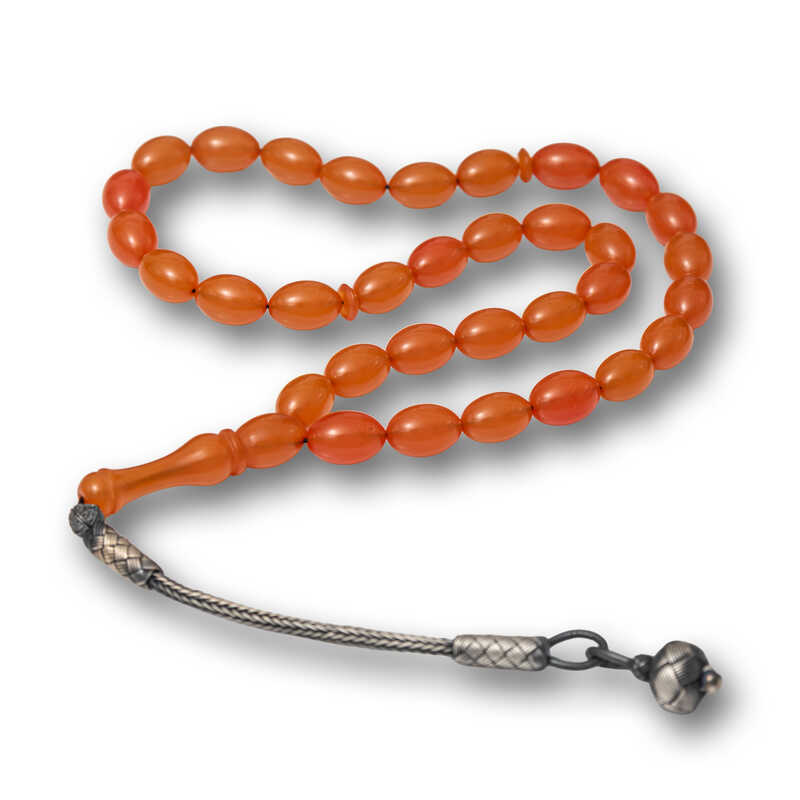 Gümüş Kazaz Püsküllü Sıkma Kehribar Tesbih