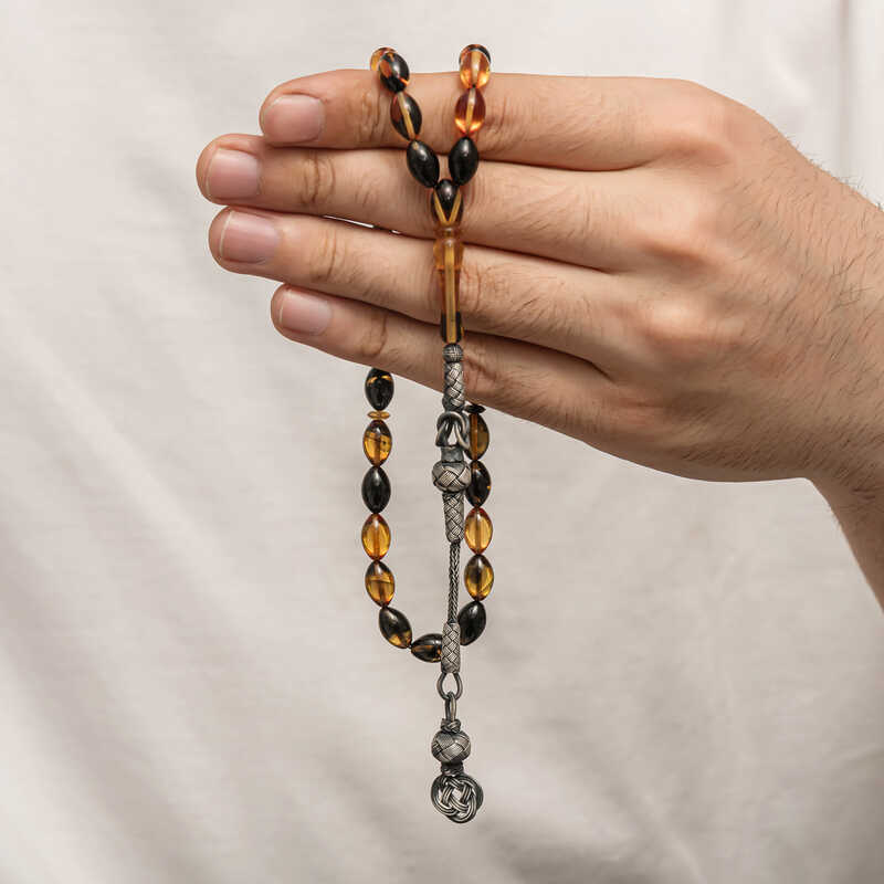 Gümüş Kazaz Püsküllü Sıkma Kehribar Tesbih