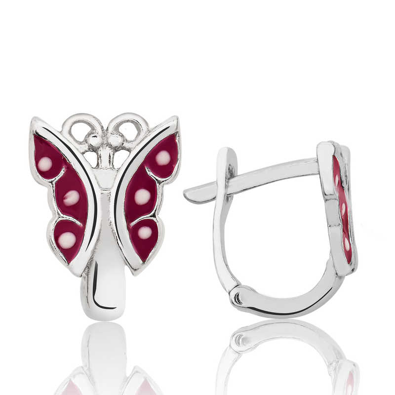 Gümüş Kırmızı Kelebek Çocuk Küpesi
