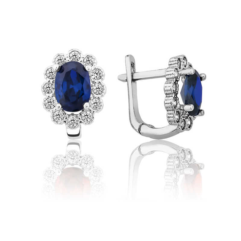 Gümüş Mavi Çiçek Desenli J Kadın Küpe