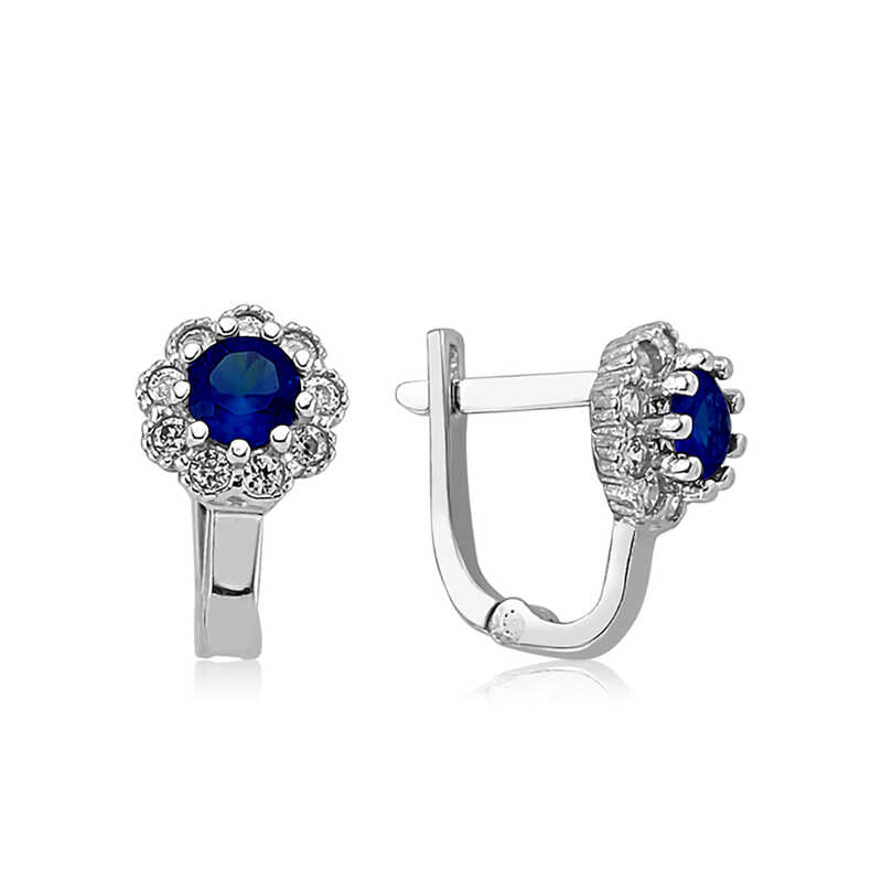 Gümüş Mavi Çiçek Desenli Yuvarlak J Kadın Küpe