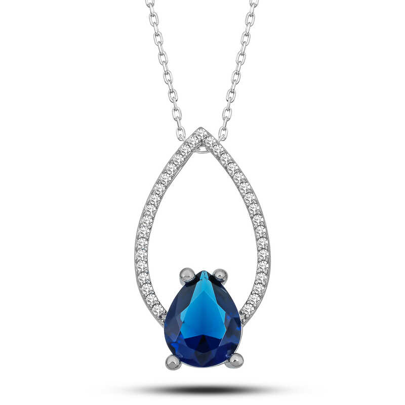 Gümüş Mavi Taşlı Damla Kadın Kolye