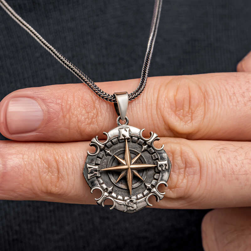 Pusula,yön bulma ve doğru yolda ilerleme sembolüdür. Hayatta doğru yönü bulmak, hedeflere ulaşmak ve rehberlik arayışını temsil eder."Benim yönümde, yolumda sensin" diyenlerin tercihi pusula kolye sizleri bekliyor.Pusula kolye modeli 925 ayar gümüşten imal edilmiştir.Bu şık kolye; doğum günü hediyesi,sevgililer günü hediyesi veya hediye olarak özel günlerde tercih edebilirsiniz.Gümüş üzerine oksit kaplama yapılmıştır.Oksit kaplama yapılan gümüş kolyeler parlaklığını uzun süre muhafaza eder.Tüm kolyelerde olduğu gibi bu gümüş pusula kolye de tamamı el emeği ile üretilmiştir.Gümüş ve değerli taşlar nedeniyle belirtilen ortalama ürün ağırlığında ± %10 sapma olabilmektedir.