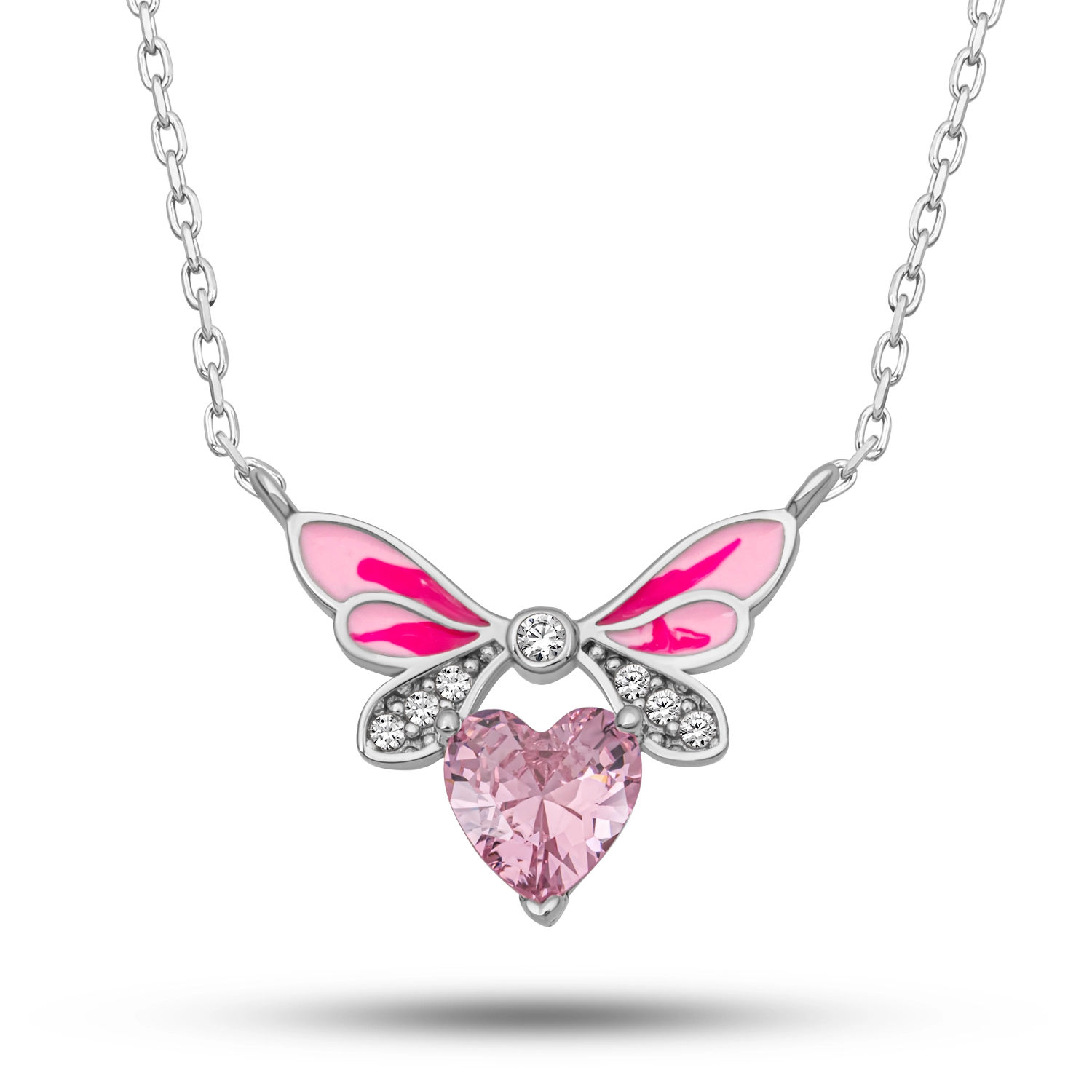Masalsı bir zarafeti yansıtan Gümüş Pembe Kalp Peri Kanatlı Kolye, romantizmin ve zarifliğin buluştuğu özel bir tasarımdır. Parlak pembe kalp taşı, kanat figürleriyle birleşerek özgürlüğü ve sevgiyi simgeler. Işıltılı detayları sayesinde boynunuzda dikkat çekici bir parıltı oluşturur. 925 ayar gümüşten üretilen bu kolye, hem günlük şıklığınızı tamamlar hem de özel günlerde stilinize büyüleyici bir dokunuş katar. Sevginin ve zarafetin sembolü olarak sevdiklerinize hediye edebileceğiniz özel bir parçadır. Gümüş ve değerli taşlar nedeniyle belirtilen ürün ağırlığında ± %10 sapma olabilmektedir.