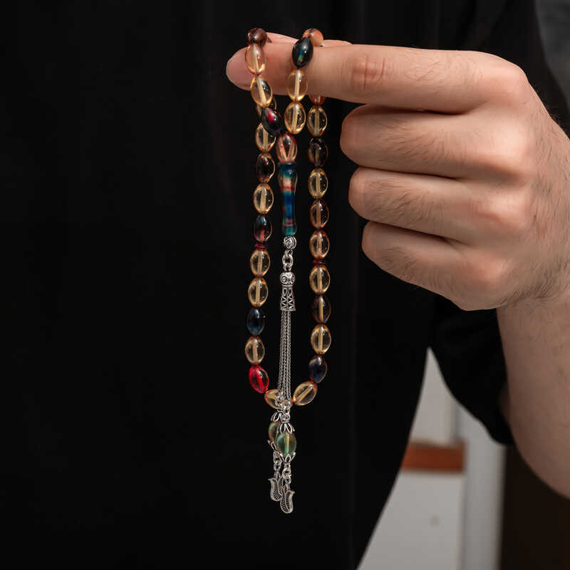Gümüş Püskül Sıkma Kehribar Tesbih