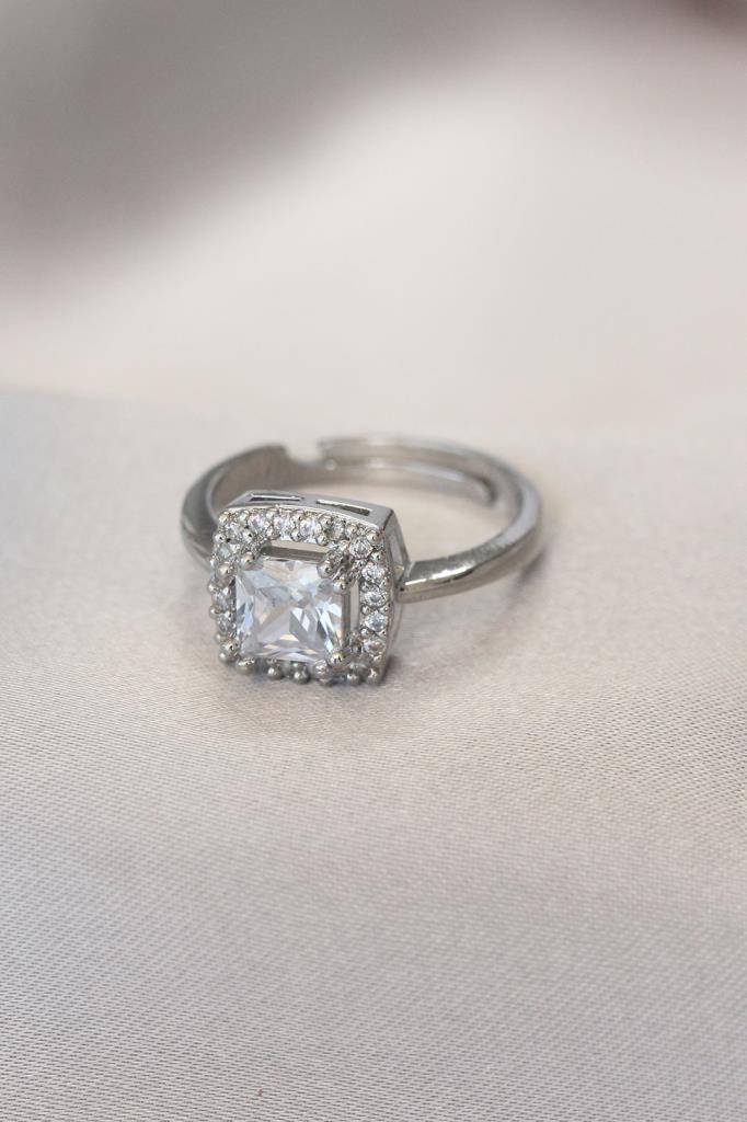Gümüş Renk Baget ve Zirkon Taşlı Kare Yüzük - TJ-BYK1740