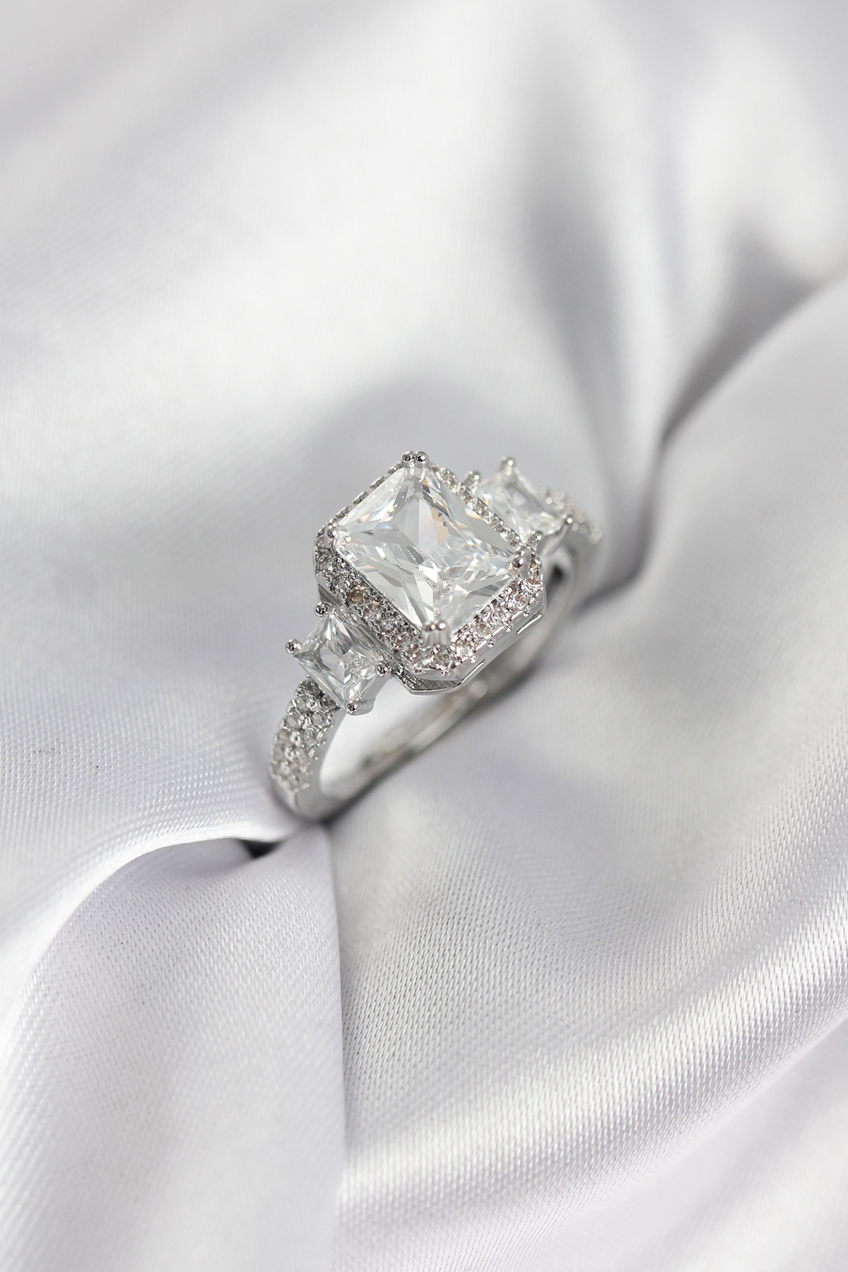 Gümüş Renk Kare Baget Zirkon Taşlı Tek Taş Model Kadın Yüzük - TJ-BYK3937