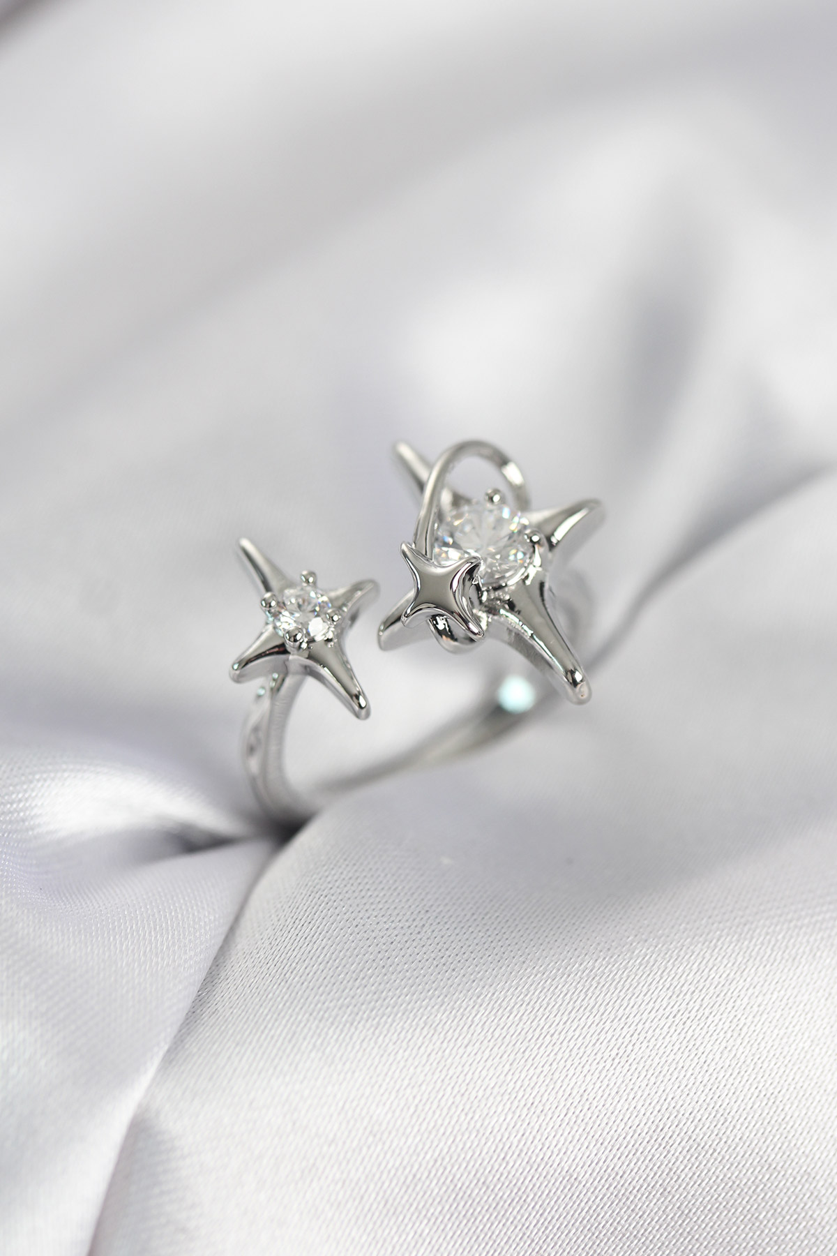 Gümüş Renk Kutup Yıldızı Model Zirkon Taşlı Kadın Yüzük - TJ-BYK4124