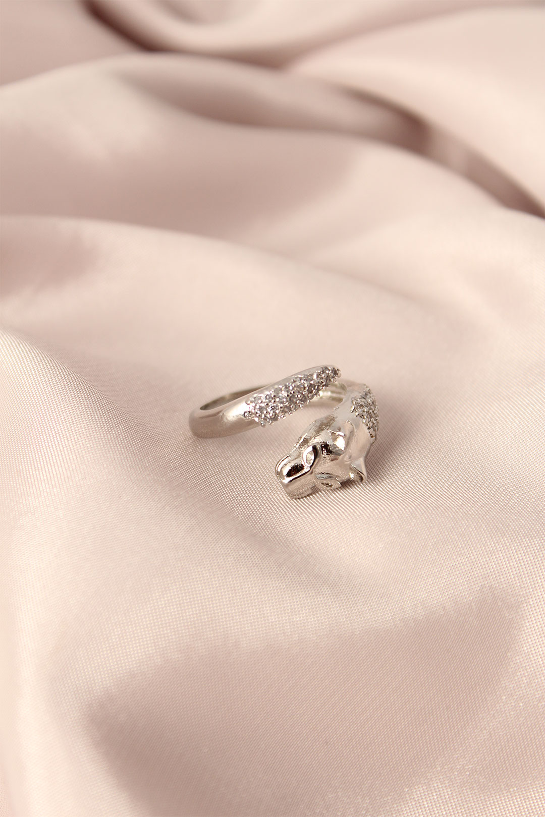 Gümüş Renk Metal Zirkon Taşlı Kaplan Model Ayarlanabilir Kadın Yüzük - TJ-BYK2153