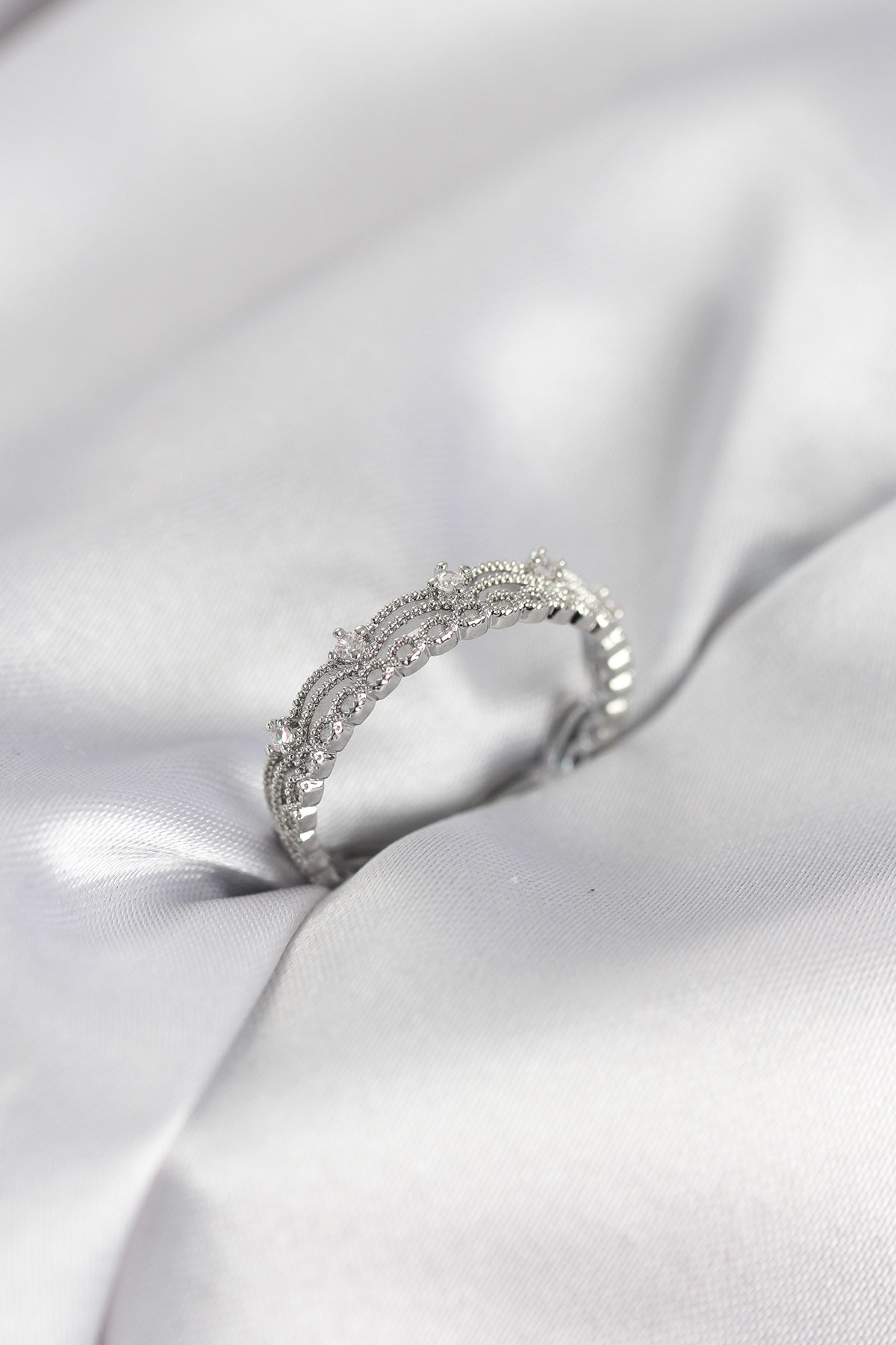 Gümüş Renk Motif Desenli Zirkon Taşlı Kadın Yüzük - TJ-BYK4144