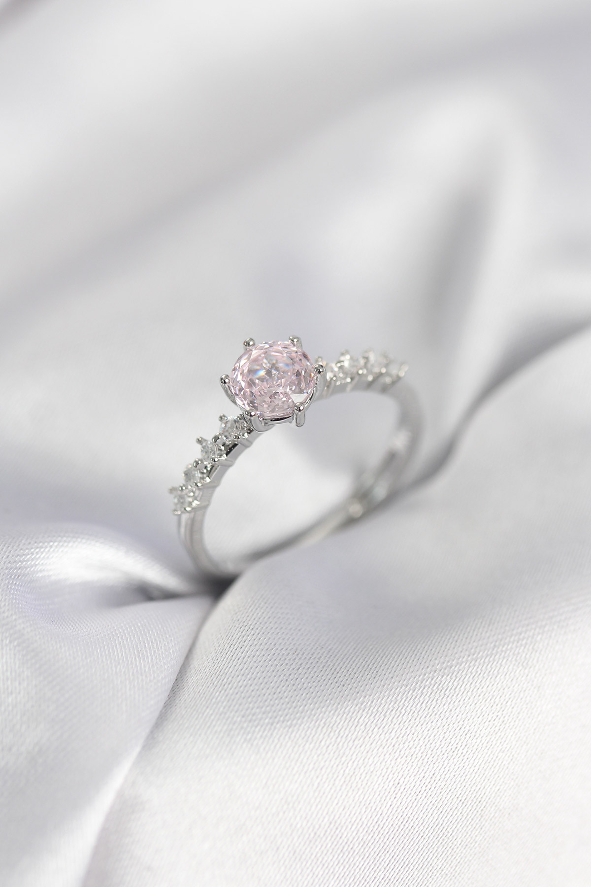 Gümüş Renk Pembe Tek Taş Model Zirkon Taşlı Kadın Yüzük - TJ-BYK3992