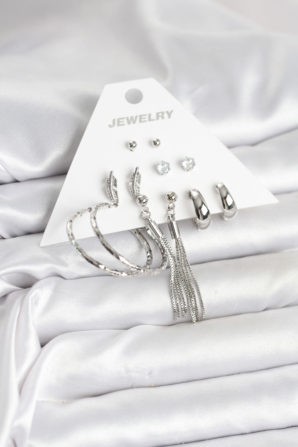 Gümüş Renk Pirinç 6 Çiftli Kadın Küpe Seti - TJ-BKP11331