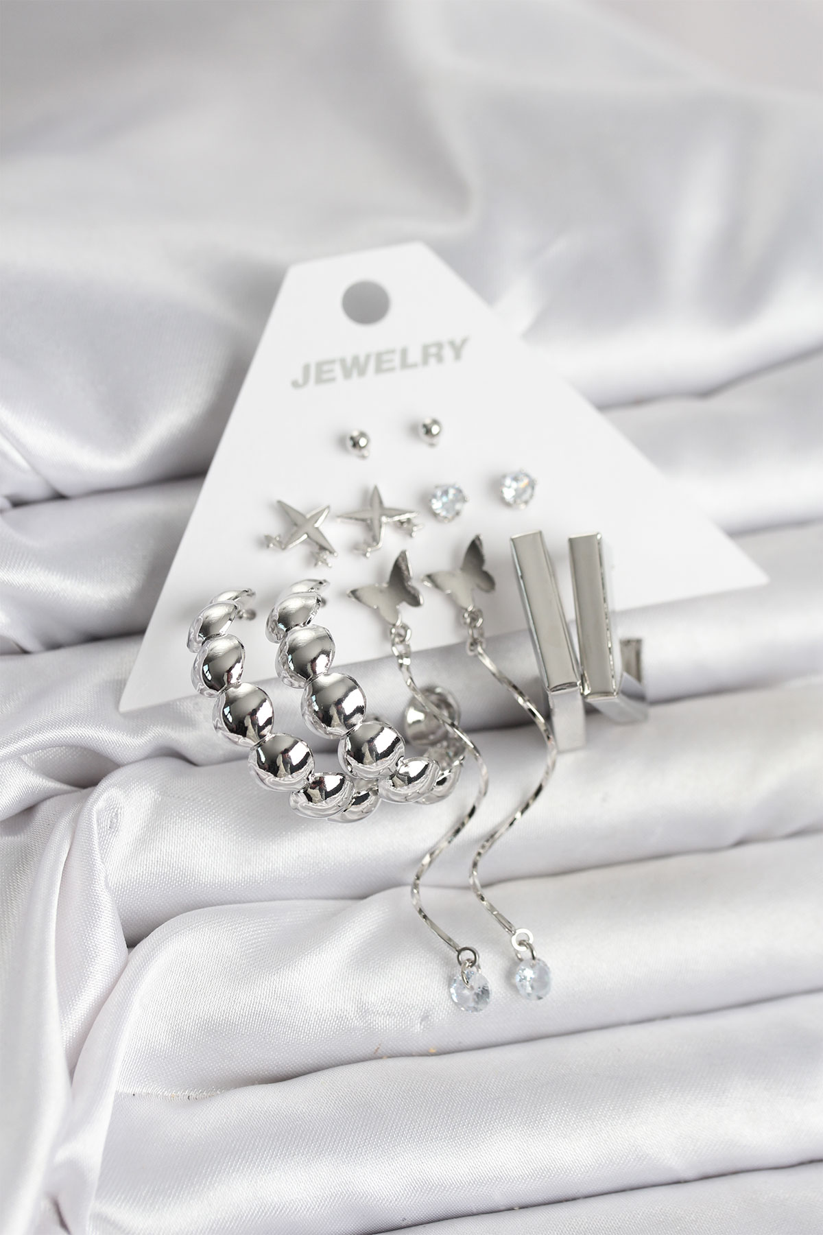 Gümüş Renk Pirinç 6'lı Kadın Küpe Seti - TJ-BKP11330