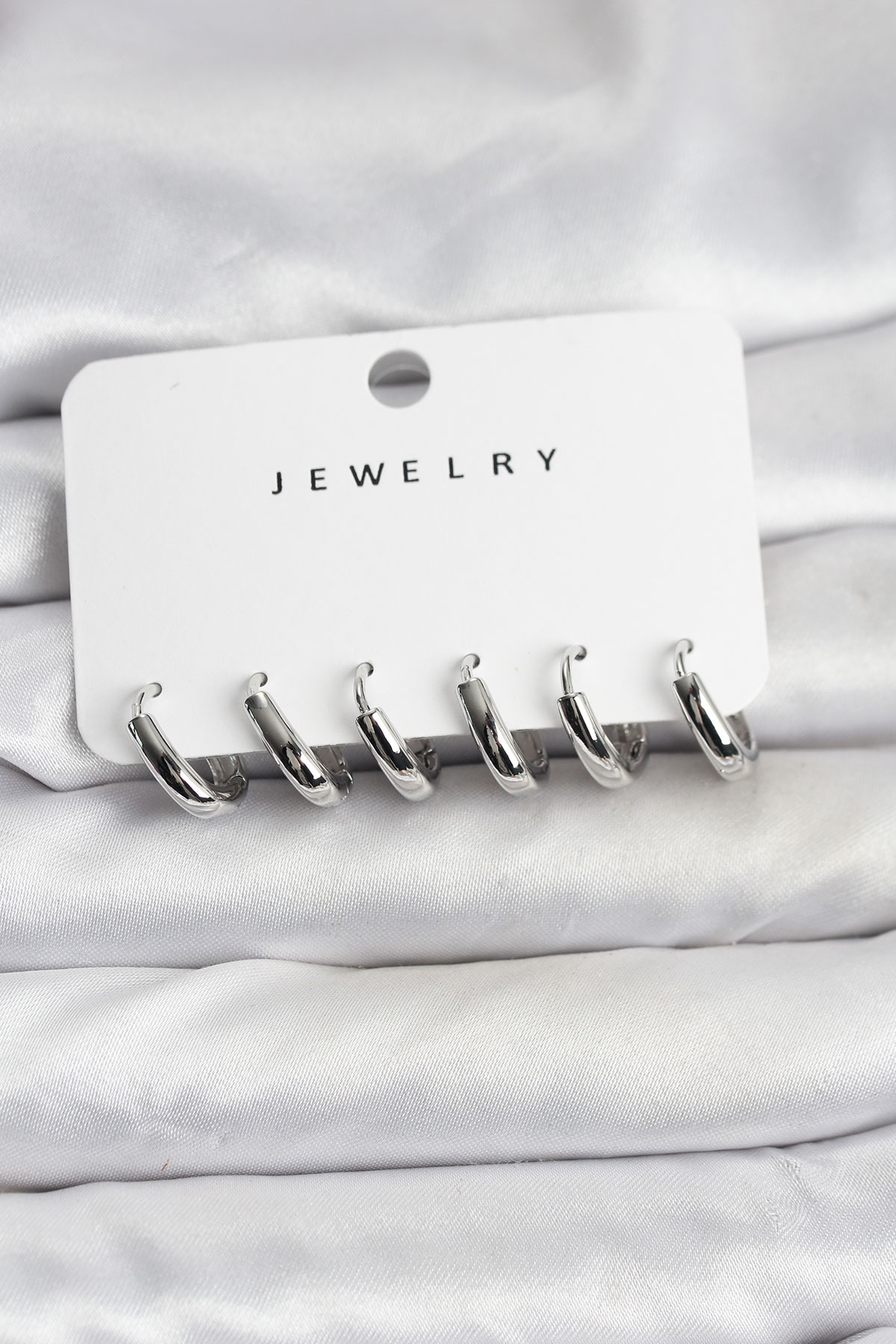 Gümüş Renk Pirinç Halka Kadın Küpe Seti - TJ-BKP11482