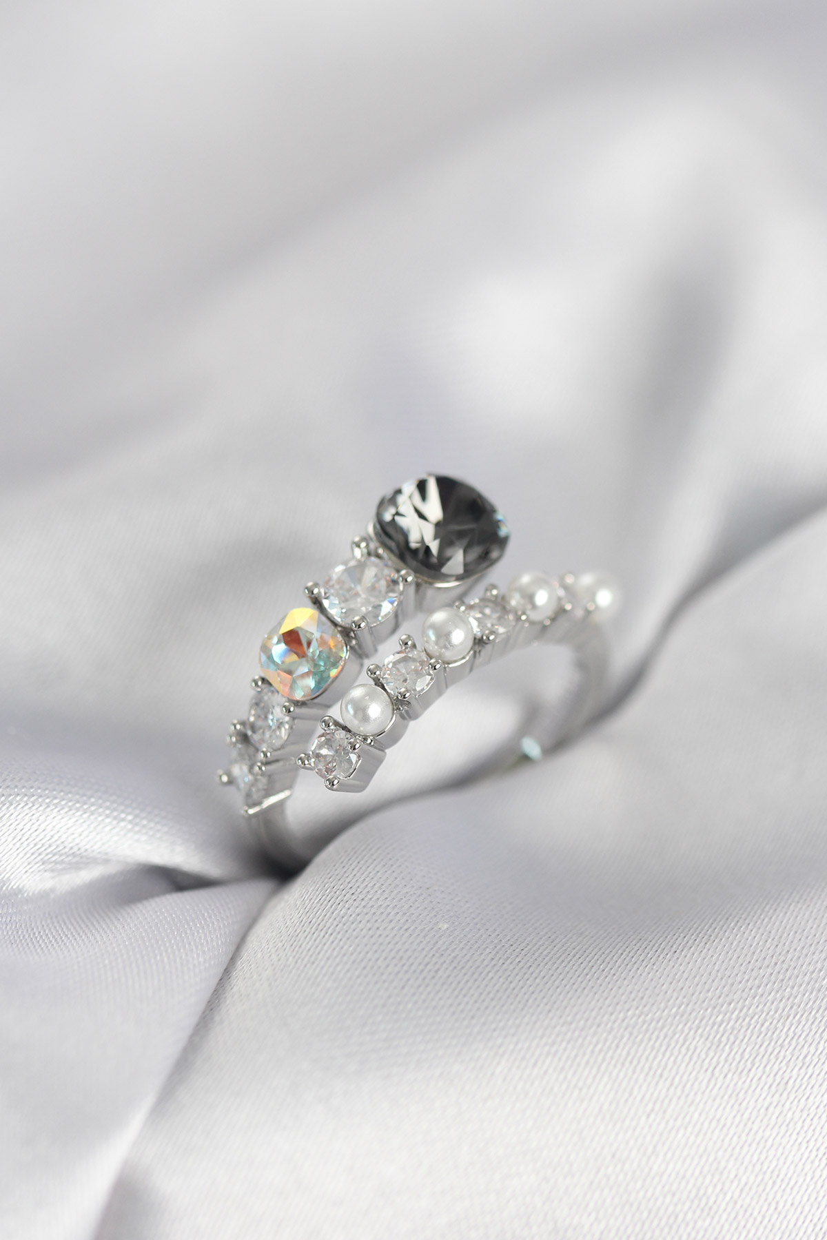 Gümüş Renk Pirinç Zirkon Taşlı İncili Kadın Yüzük - TJ-BYK4035