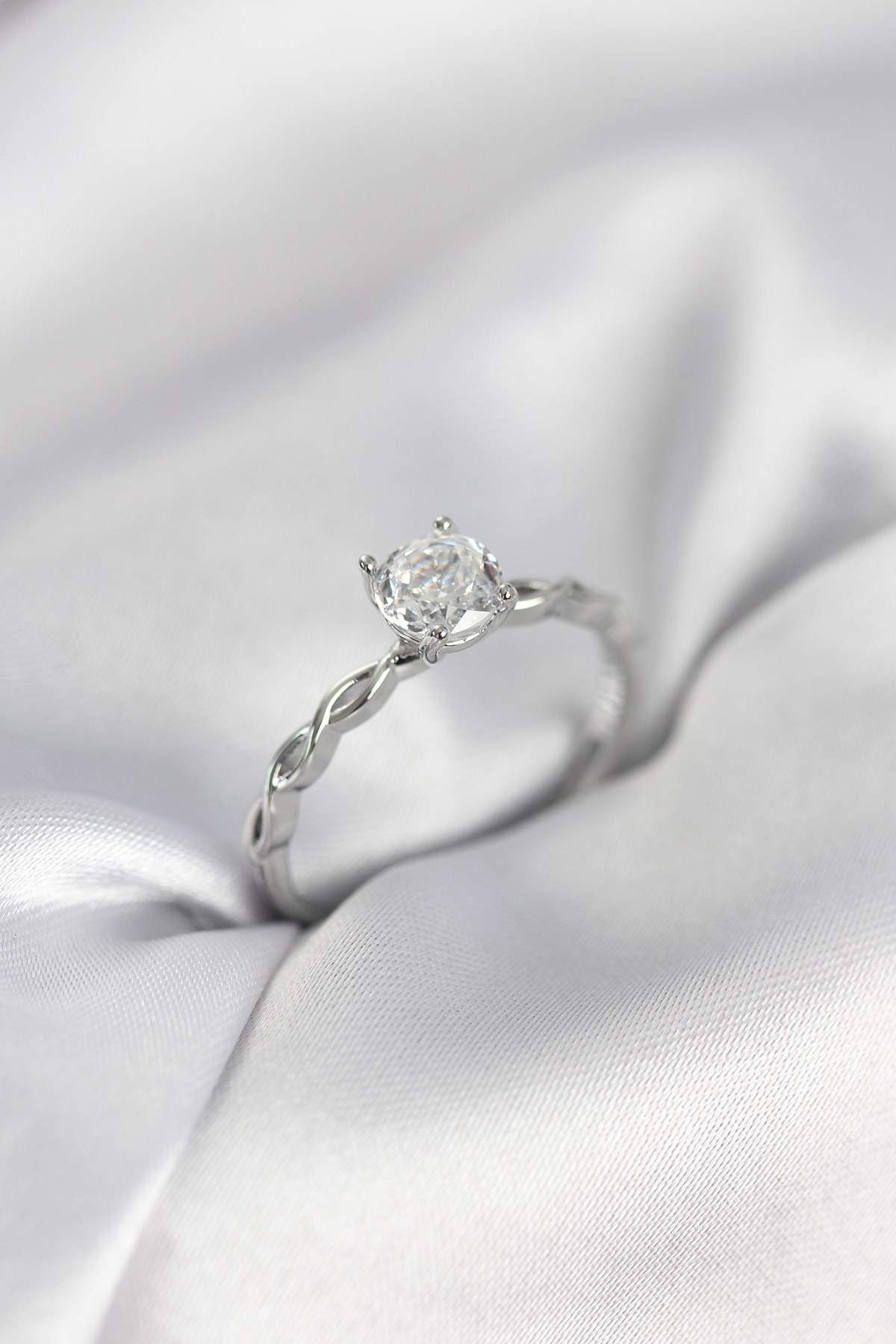 Gümüş Renk Sarmal Zincir Model Tek Taş Model Zirkon Taşlı Kadın Yüzük - TJ-BYK3976