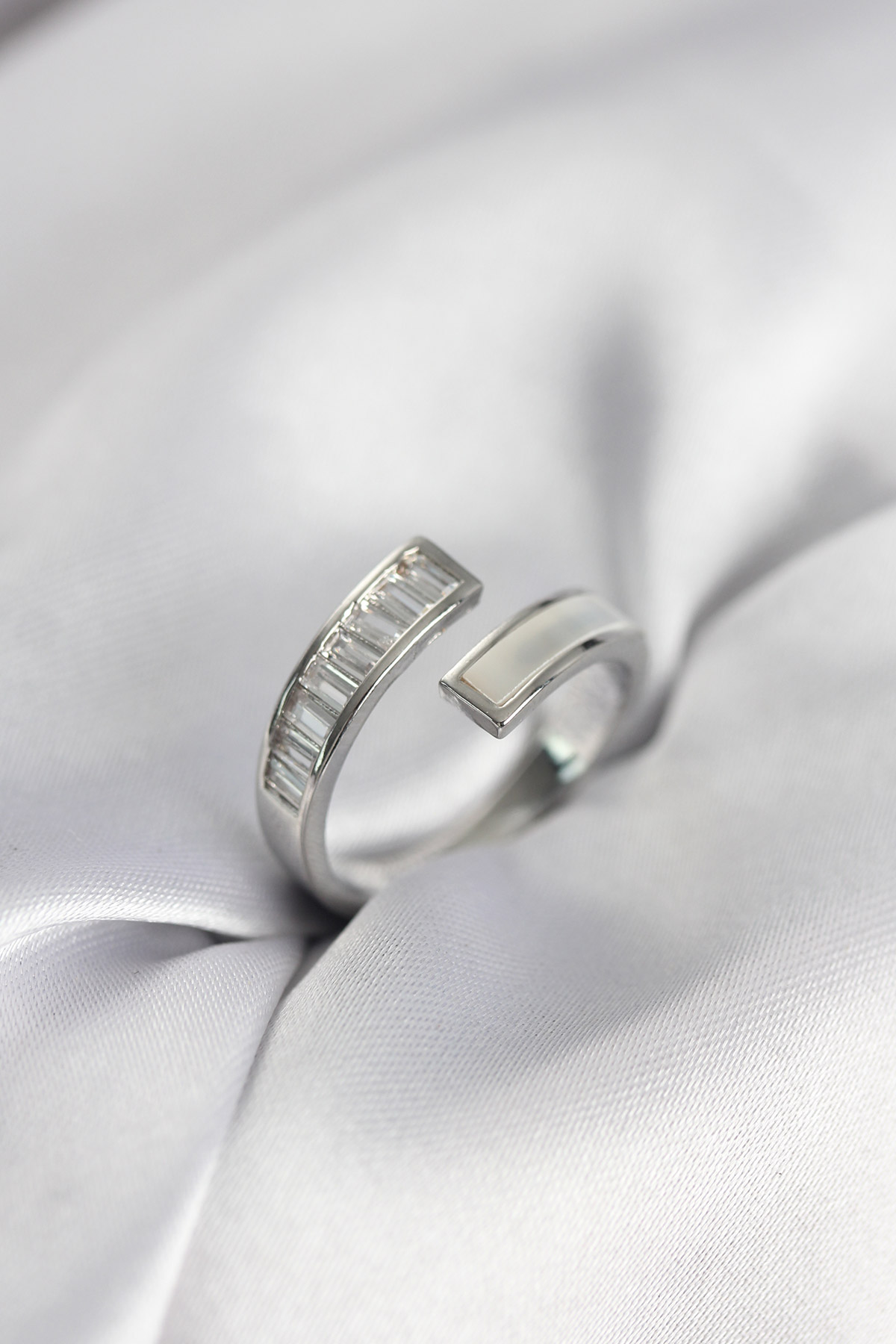 Gümüş Renk Sedefli Baget Zirkon Taşlı Kadın Yüzük - TJ-BYK3952