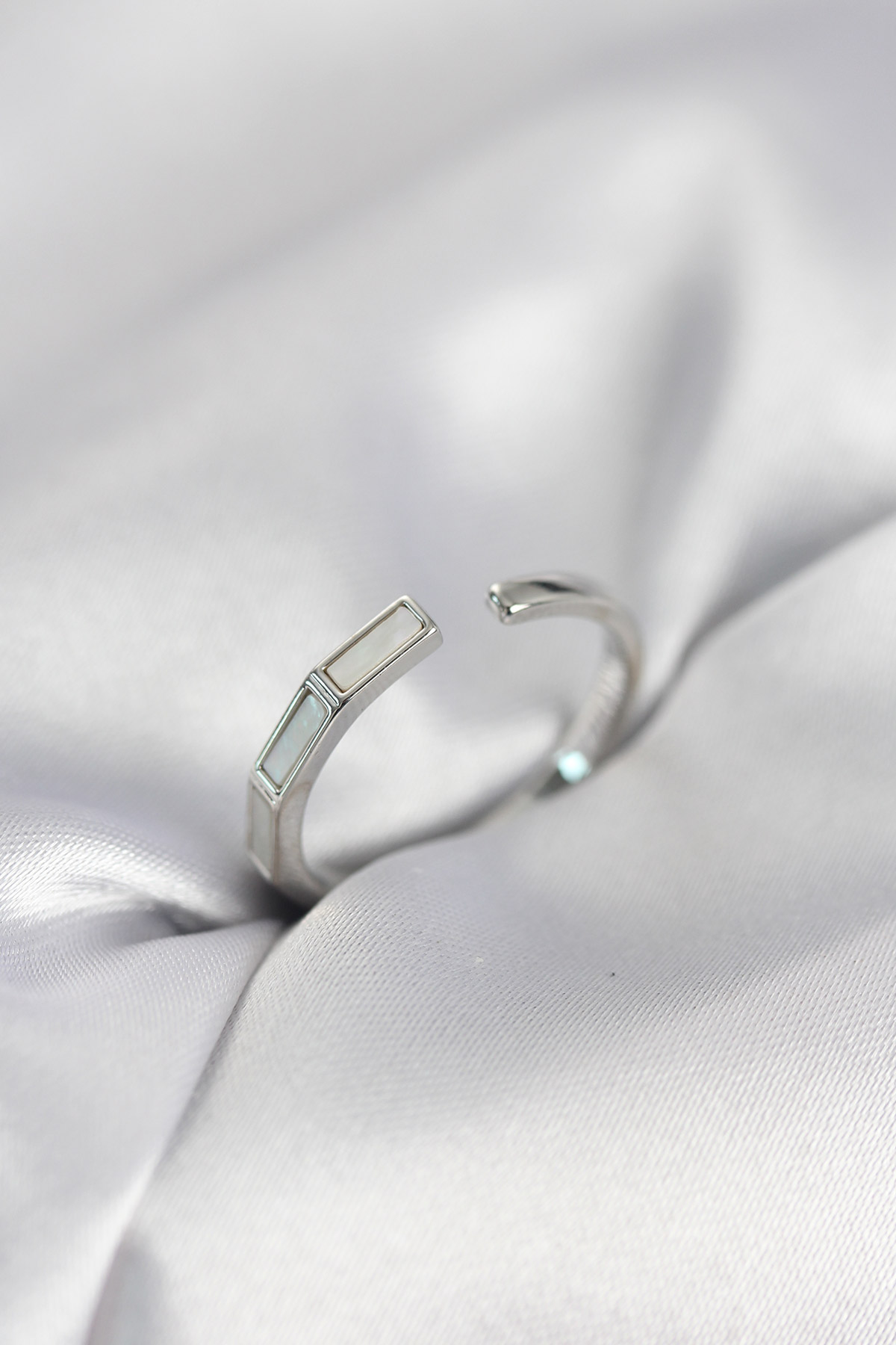 Gümüş Renk Sedefli Çubuk Model Kadın Yüzük - TJ-BYK4081
