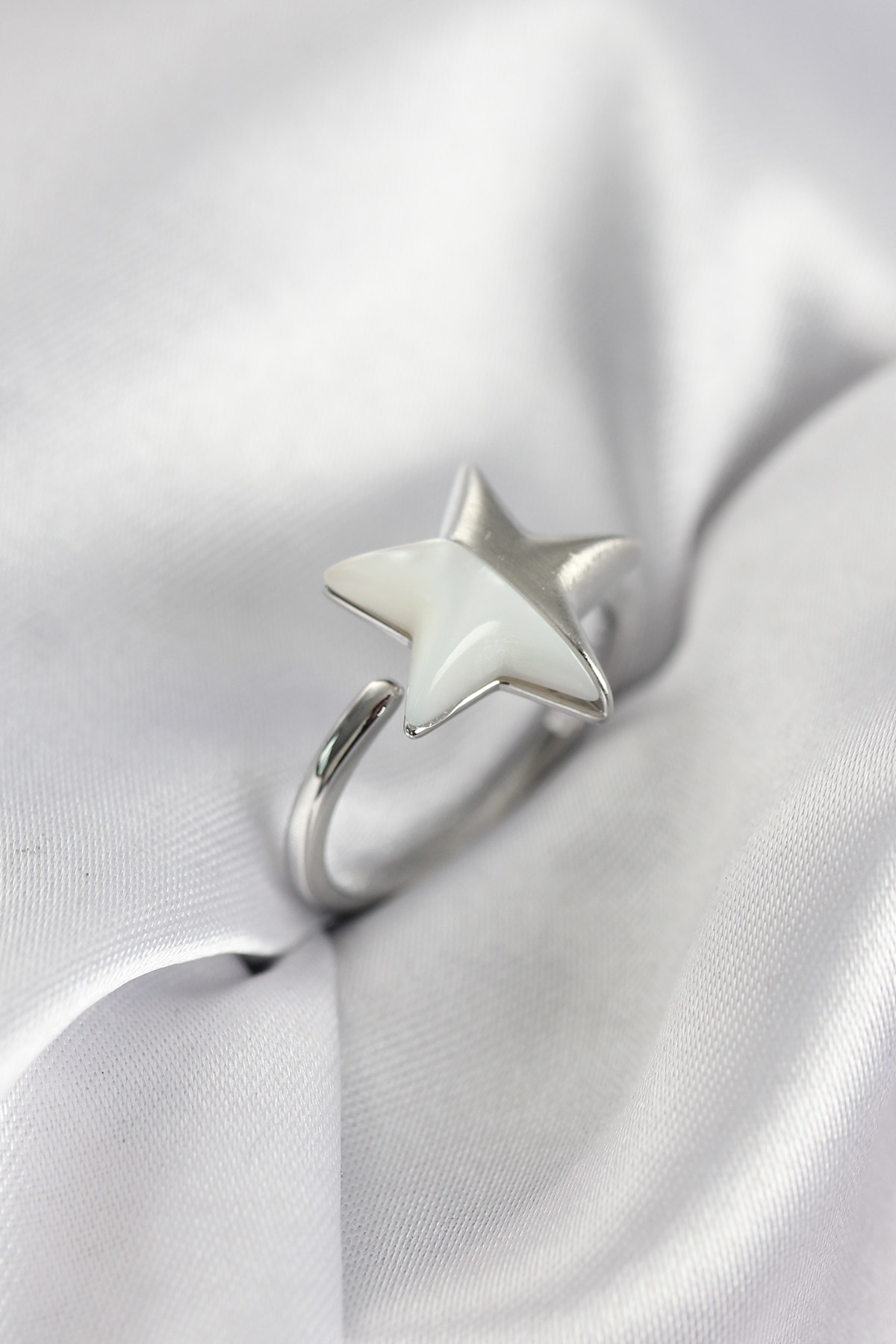 Gümüş Renk Sedefli Yıldız Model Kadın Yüzük - TJ-BYK3939