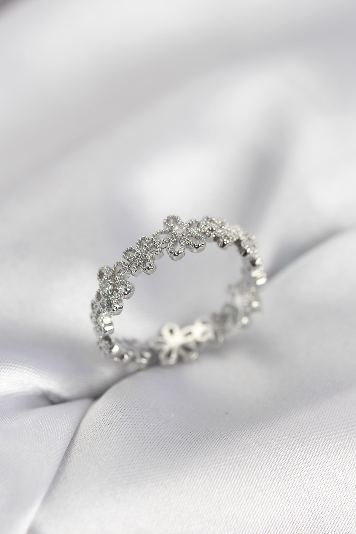 Gümüş Renk Sıralı Çiçek Model Zirkon Taşlı Kadın Yüzük - TJ-BYK4108