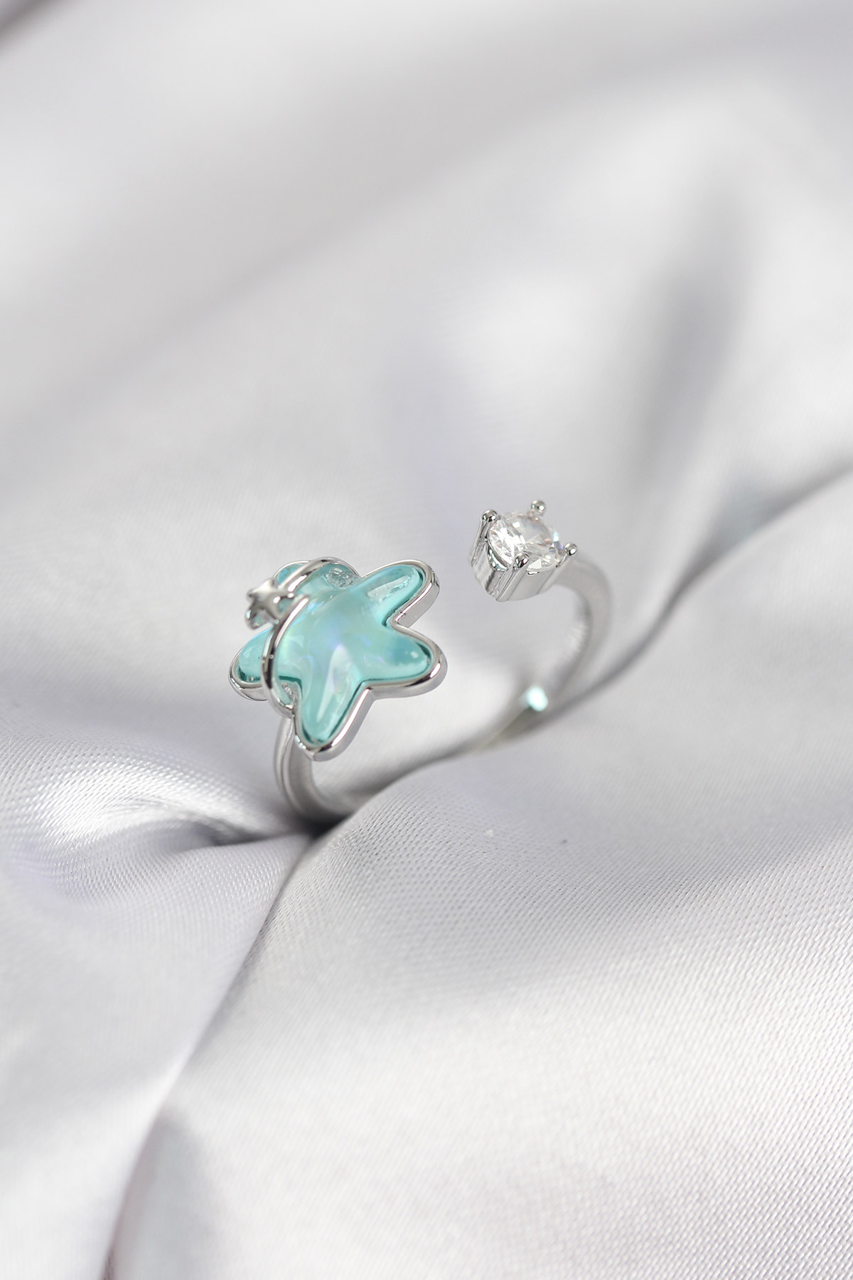 Gümüş Renk Turkuaz Yıldız Model Kadın Yüzük - TJ-BYK4146