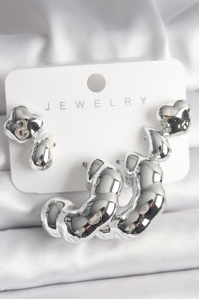 Gümüş Renk Yonca Damla Halka Model CCB Plastik Kadın Küpe Seti - TJ-BKP10027