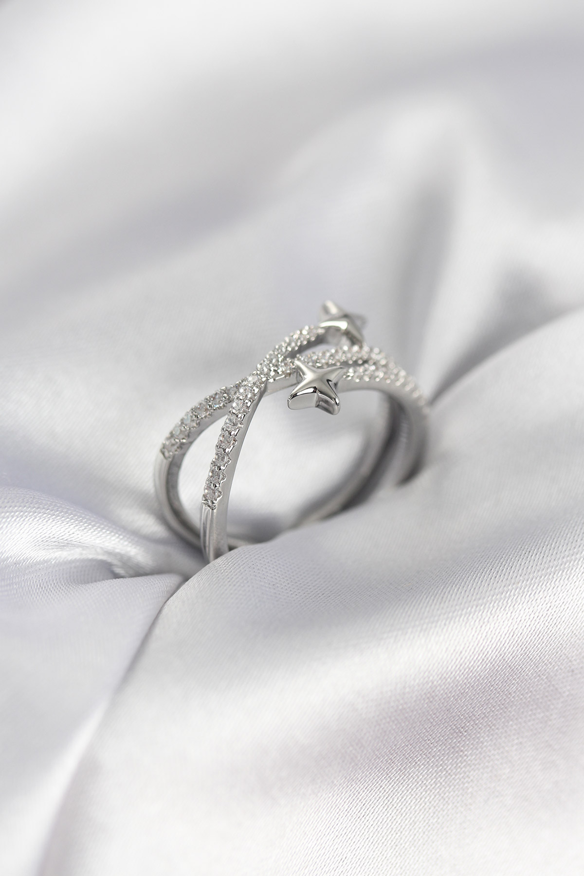 Gümüş Renk Zirkon Taşlı Halley Model Kadın Yüzük - TJ-BYK3970