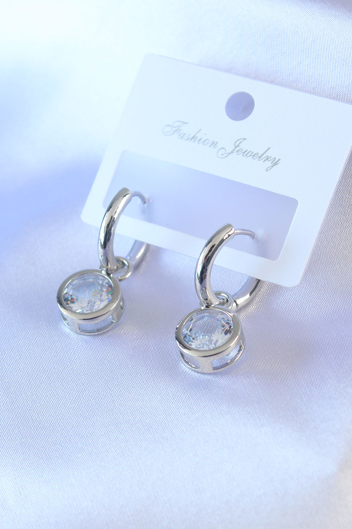 Gümüş Renk Zirkon Taşlı Pirinç Kadın Küpe - TJ-BKP7504