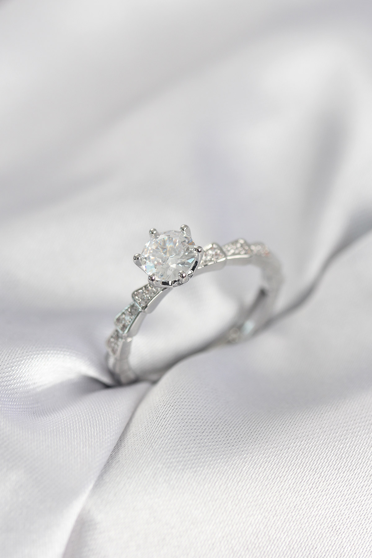 Gümüş Renk Zirkon Taşlı Tek Taş Model Kadın Yüzük - TJ-BYK4025