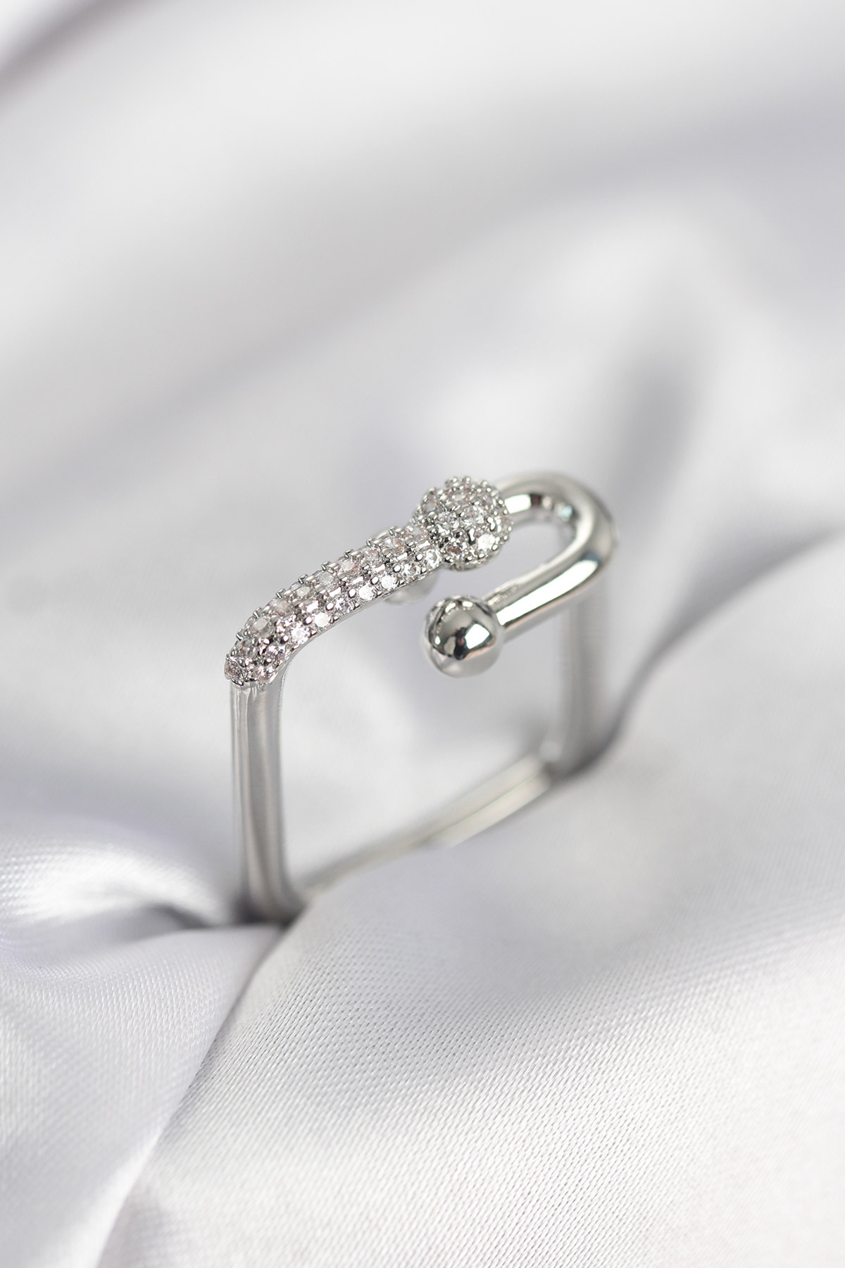 Gümüş Renk Zirkon Taşlı Tifani Model Kare Kadın Yüzük - TJ-BYK4002