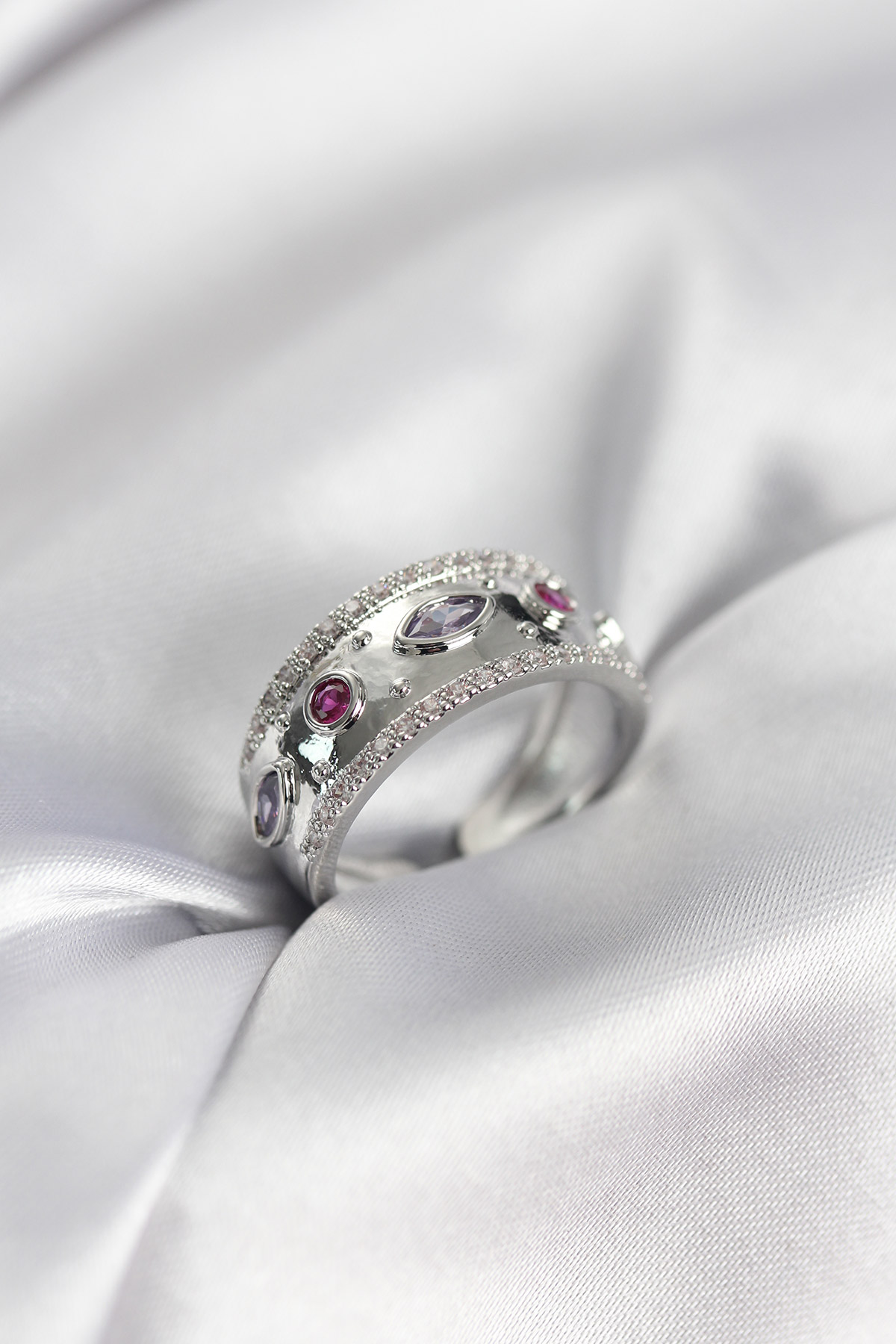Gümüş Renk Zirkon Taşlı Vintage Kadın Yüzük - TJ-BYK3960