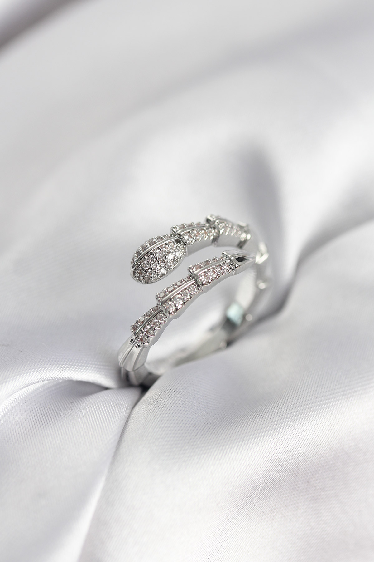Gümüş Renk Zirkon Taşlı Yılan Model Kadın Yüzük - TJ-BYK3950