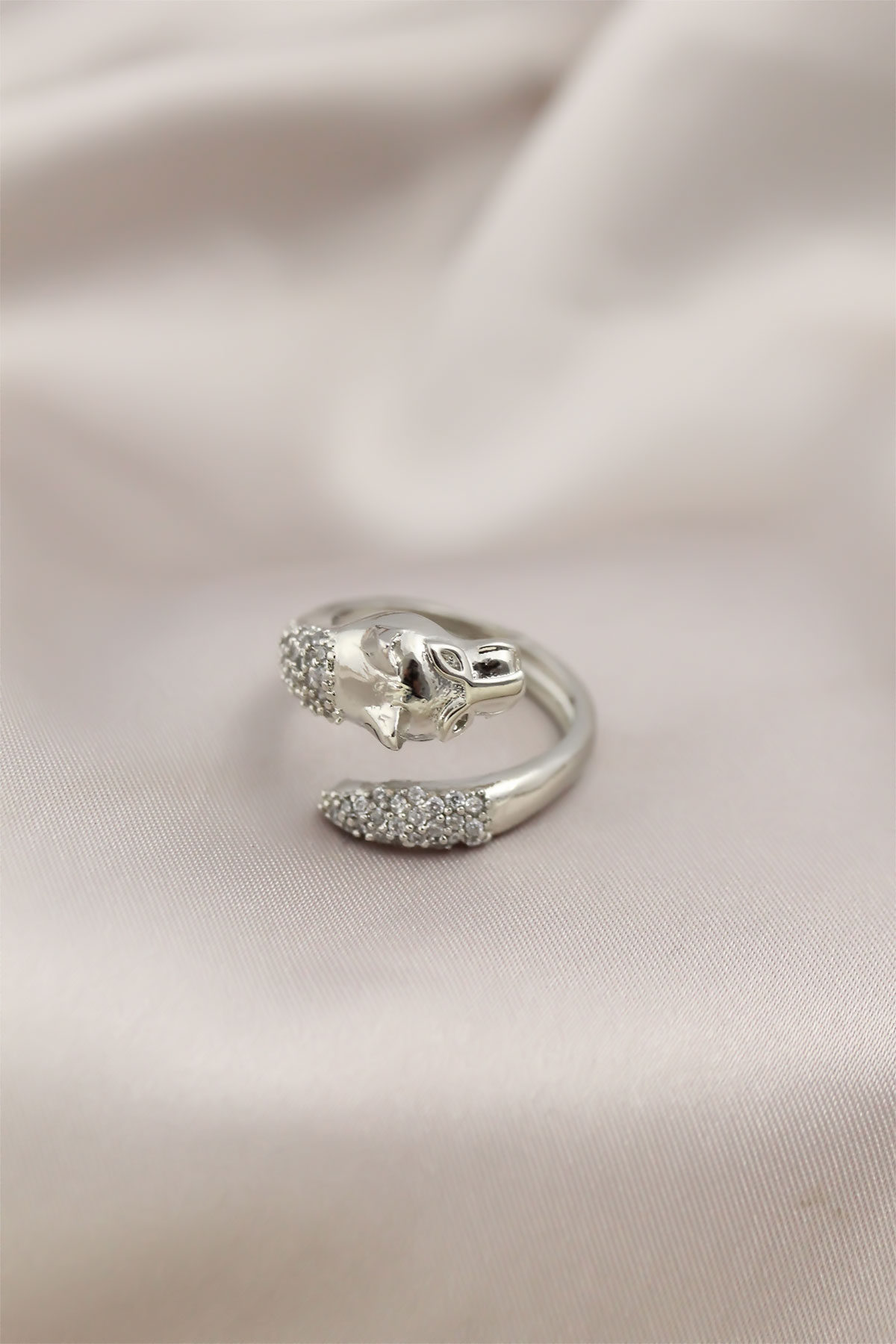 Gümüş Renkli Metal Kaplan Model Zirkon Taşlı Kadın Yüzük - TJ-BYK2209