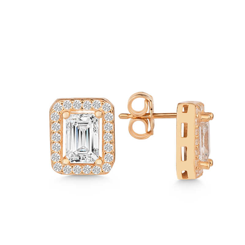 Gümüş Rose Beyaz Baget Taşlı Çivili Kadın Küpe