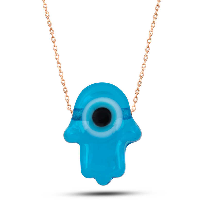 Gümüş Rose Mavi Nazarlı Cam Fatma Ana Eli Kadın Kolye