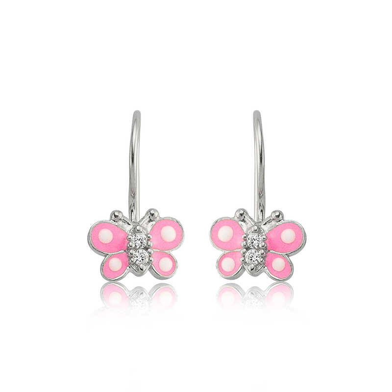 Gümüş Sallantılı Pembe Kelebek Çocuk Küpesi
