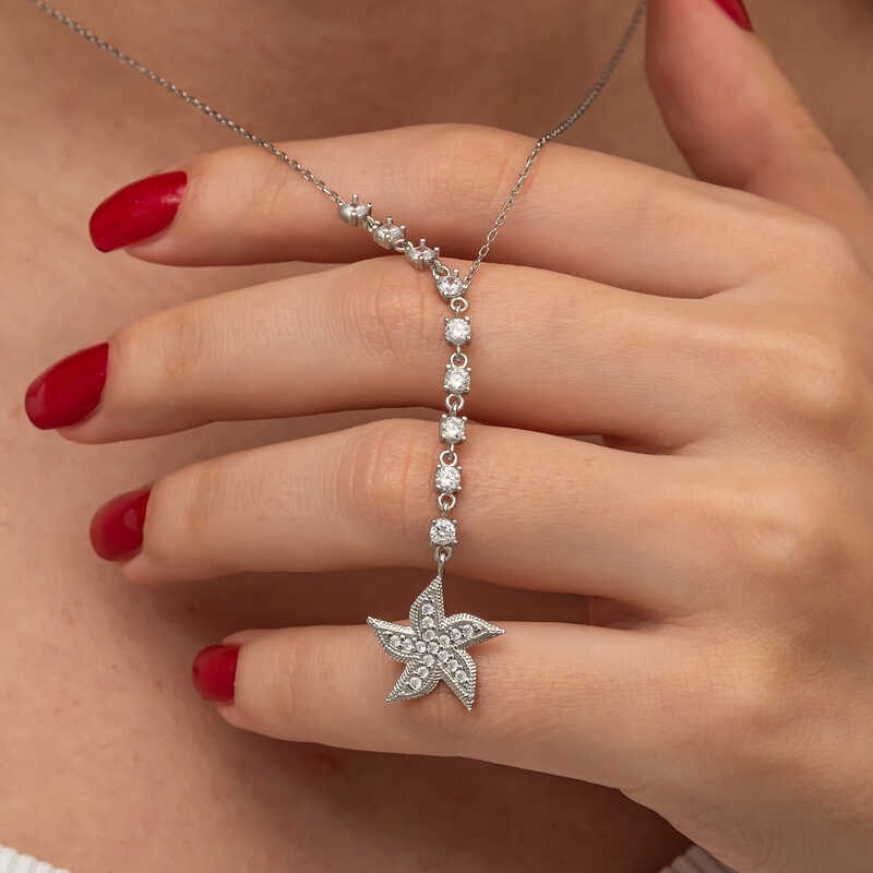 Gümüş Sıralı Zirkon Taşlı Deniz Yıldızı Kadın Kolye