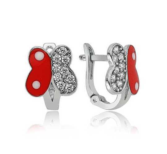Gümüş Kırmızı Kelebek Çocuk Küpesi