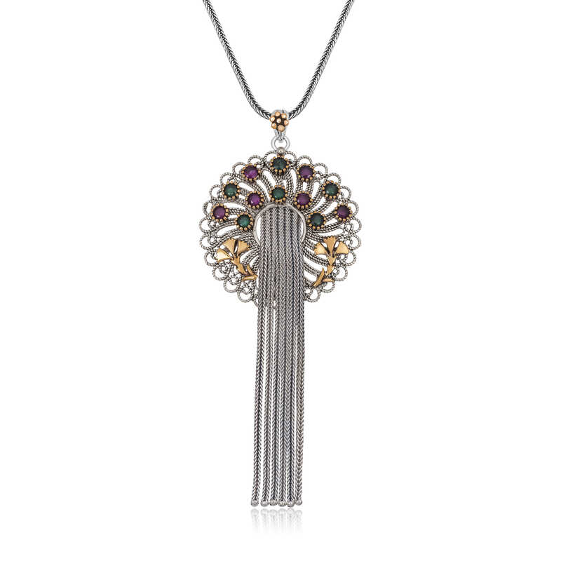 Gümüş Telkari Yakut Zümrüt Renkli Taşlı Kadın kolye