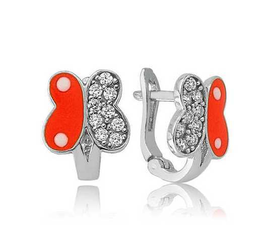 Gümüş Turuncu Kelebek Çocuk Küpesi