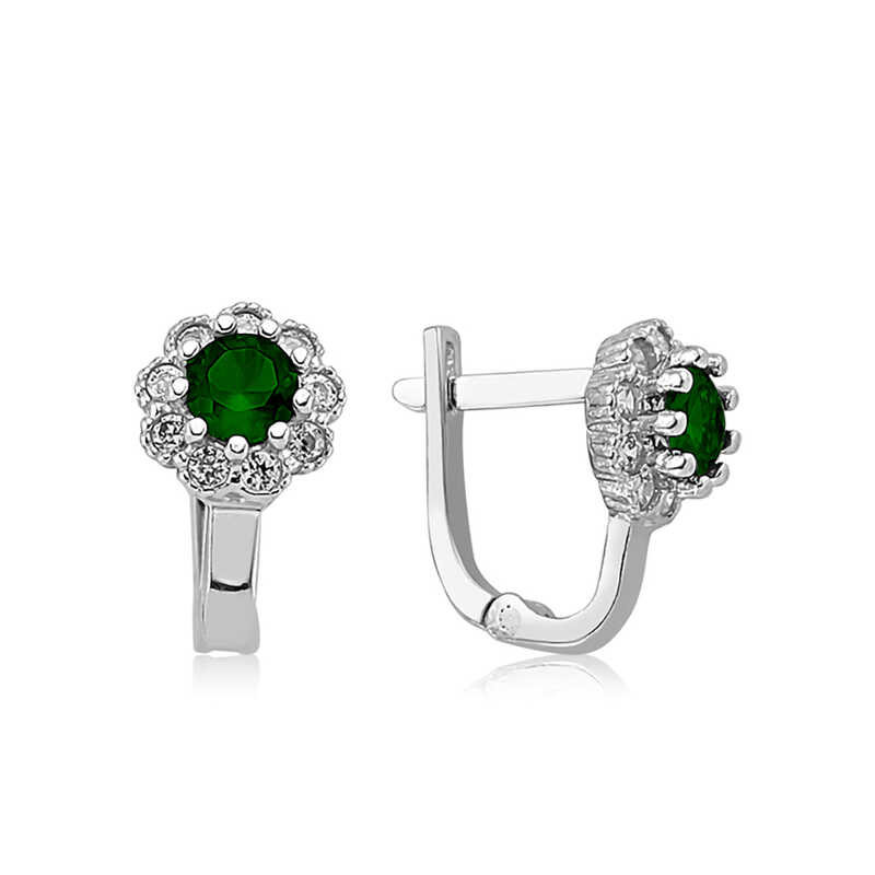 Gümüş Yeşil Çiçek Desenli Yuvarlak J Kadın Küpe
